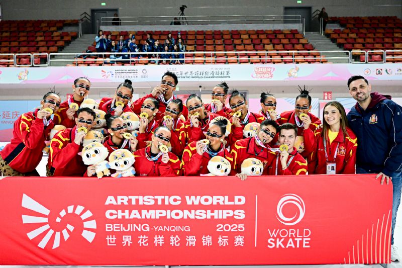 ¡Histórico! Los Grupos Show Junior españoles se han coronado como campeones y subcampeones del mundo en Beijing en la primera edición en la que se incluía esta categoría. El AS Cunit ha brillado sobre la pista y ha obtenido un total de 35.67 puntos por su “World As One” cerrando una temporada en la que también se proclamaron campeones de Europa el pasado mes de mayo en Zaragoza. El segundo puesto ha sido para el CPA Gondomar con el “Checkmate to the Lady” por el que ha sumado 33.34 puntos. El tercer puesto ha sido para el Division italiano. Nuestro tercer representante, el CPA Tona, ha sido sexto con su programa “Itch”. El futuro de los shows españoles está asegurado.